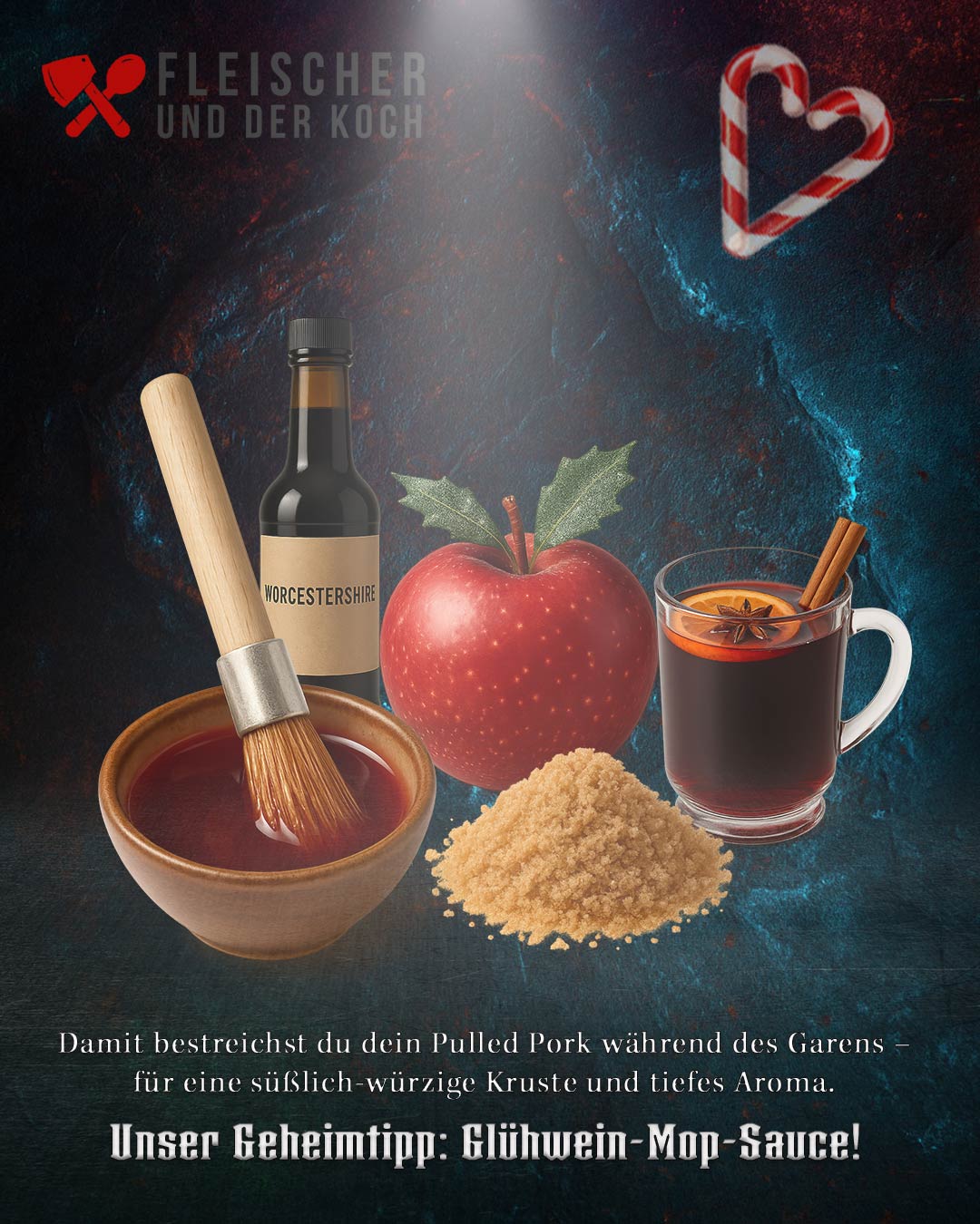 Im Bundle enthalten: 150 g FuK „Zupf & Zauber“ Pulled Pork Rub – perfekt für das klassische BBQ-Aroma. Etwa 30 bis 40 Gramm Rub pro Kilogramm Fleisch genügen. Für die weihnachtliche Note kannst du optional gemahlenen Zimt oder einen Hauch Orangenzeste ergänzen. Als Rauchholz empfehlen wir Apfel oder Kirsche – beides mild und fruchtig, passend zu den festlichen Aromen.