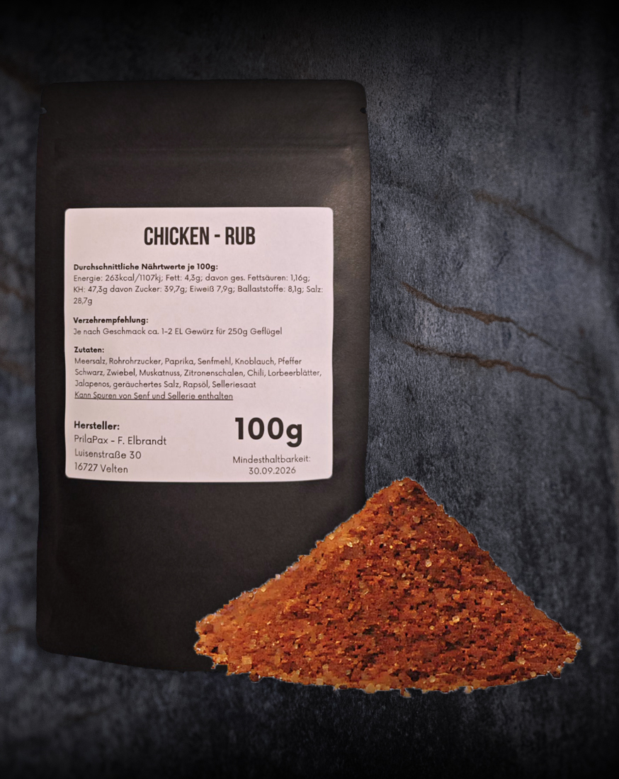 Wie der Name „Chicken Rub“ verrät, ist diese Mischung speziell auf Geflügel abgestimmt. Egal, ob du Hähnchenflügel, Hähnchenschenkel, eine ganze Poularde oder Pute zubereitest – der Rub garantiert dir eine aromatische Kruste und einen vollmundigen Geschmack, der das Fleisch saftig und würzig zugleich werden lässt. - Vielseitig einsetzbar